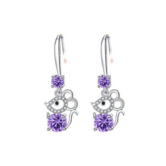 Женские стильные противоаллергические серьги-крючки в форме мыши из сплава со стразами фиолетовый