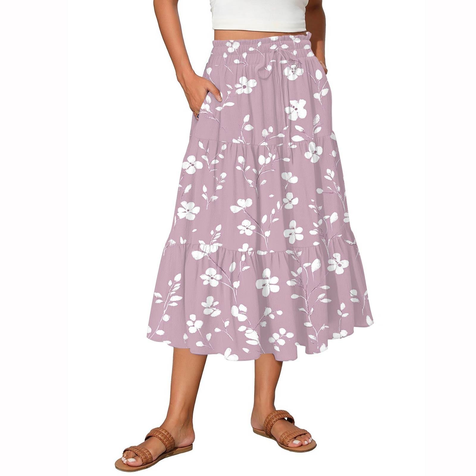 Женские струящиеся расклешенные юбки-макси с оборками и эластичным поясом, элегантные многослойные длинные юбки в стиле бохо XXL розовый