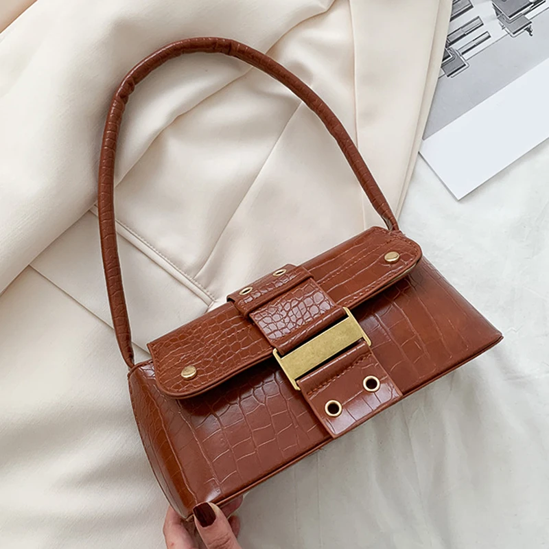 Женские сумки для подмышек с клапаном, однотонные дамские сумочки на плечо из искусственной кожи с пряжкой под крокодиловую кожу, Женский б...