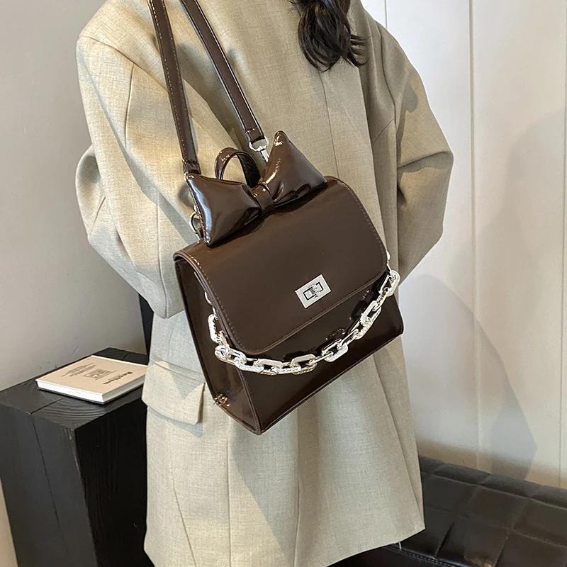 Женские сумки через плечо, новые модные женские сумки из искусственной кожи с бантом, высококачественные мини-пряжки, дизайнерские роскошные рюкзаки