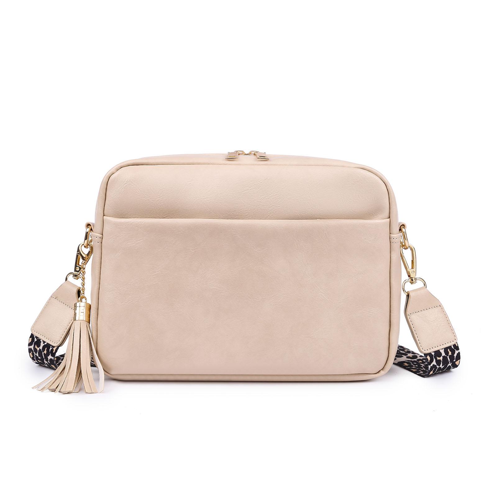 Женские сумки через плечо с леопардовым принтом и ремнем для гитары, сумка из искусственной кожи, подходящие к любой сумке через плечо, сумка-мессенджер с кисточками в стиле ретро бежевый