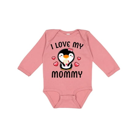 Inktastic I Love My Mommy with Cute Penguin and Hearts Gift Baby Girl Long Sleeve Bodysuit