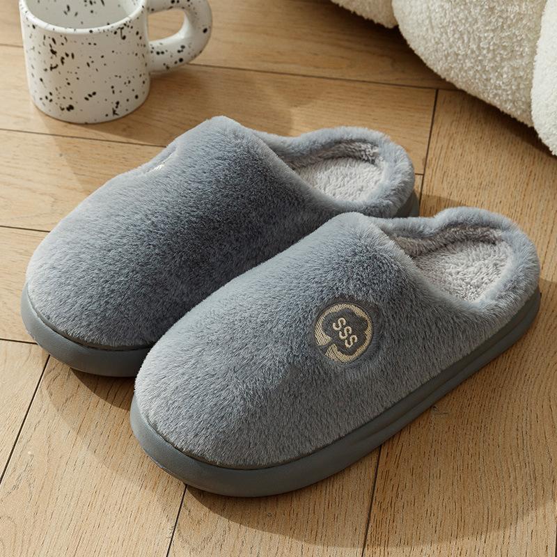 Женские тапочки из хлопка, которые можно носить на улице осенью и зимой, а также в помещении. Нескользящие теплые плюшевые тапочки с толстой подошвой для мужчин. 40-41