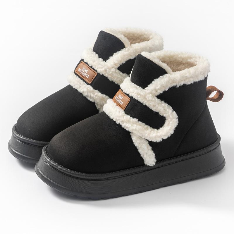 Женские теплые ботильоны с толстой подошвой, модные лоскутные нескользящие ботинки на платформе, зимние новые зимние ботинки из мягкого хлопка 36-37 чёрный