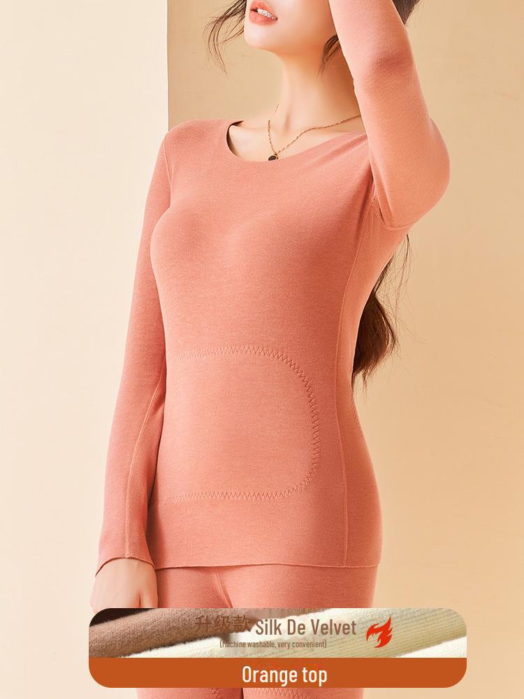 Женские осенне-зимние немецкие бархатные нашивки облегающего кроя с круглым вырезом теплые топы XXL оранжевый