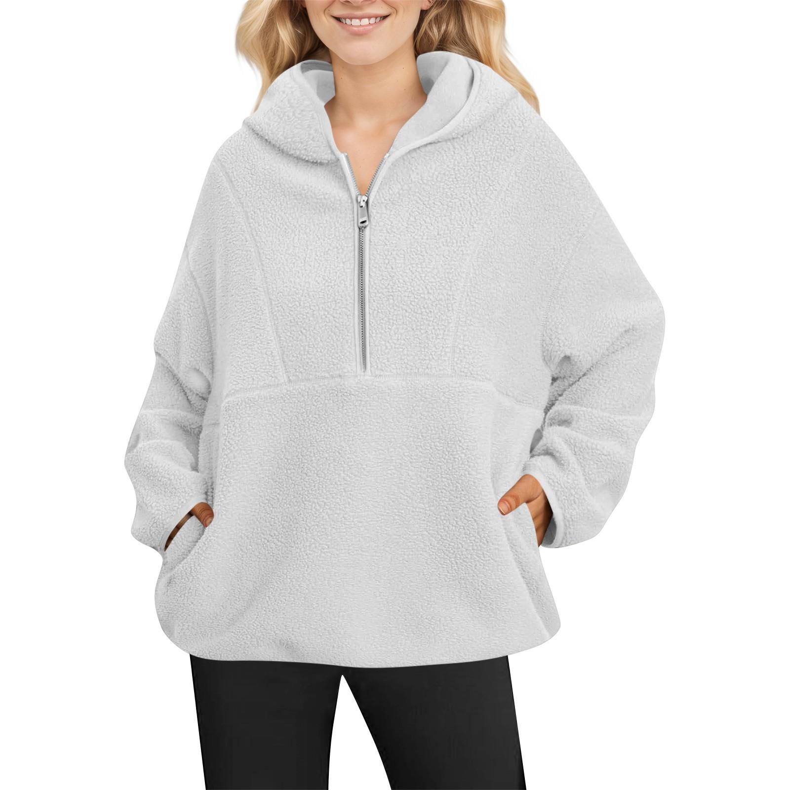 Женские толстовки большого размера с капюшоном из пушистого флиса на молнии, свитшоты, осенние наряды с карманами XL белый