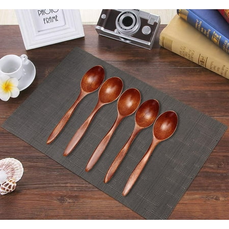 Dealovy 5Pcs Lot Kitchen Wooden Spoon Bamboo Cooking Utensil Tool Soup Teaspoon Catering Clearance