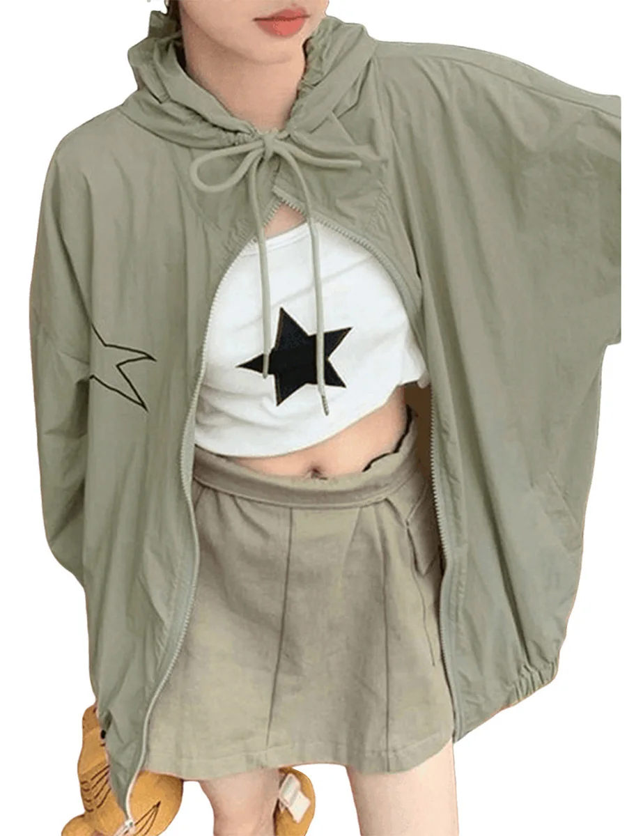 Женские толстовки на молнии, модные толстовки большого размера с длинным рукавом и принтом звезд, повседневная куртка