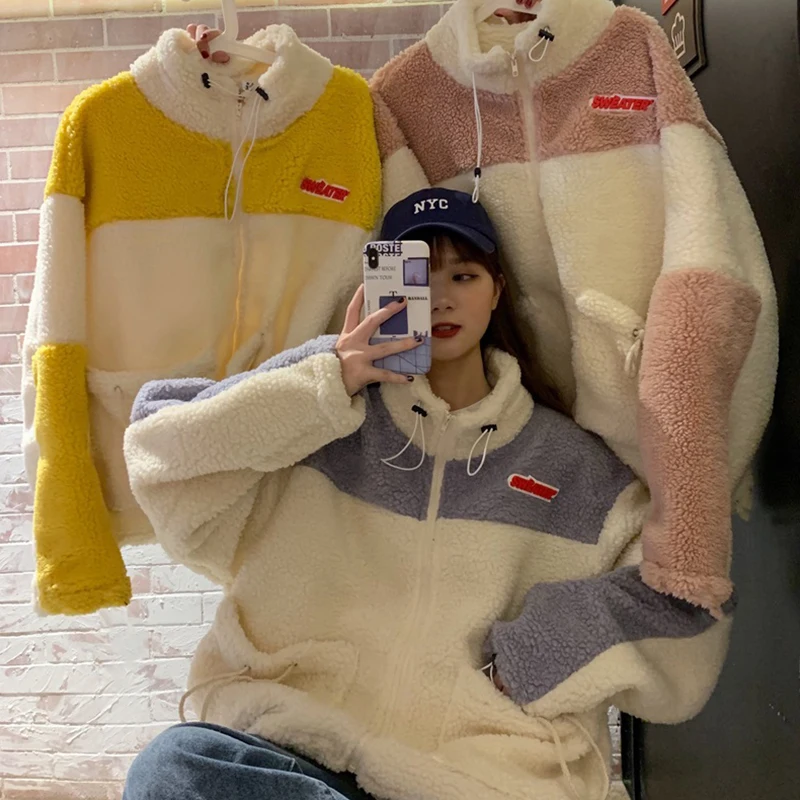 Женские толстовки с капюшоном, толстые флисовые толстовки, новое милое осенне-зимнее Свободное пальто на молнии для девочек в стиле пэчворк