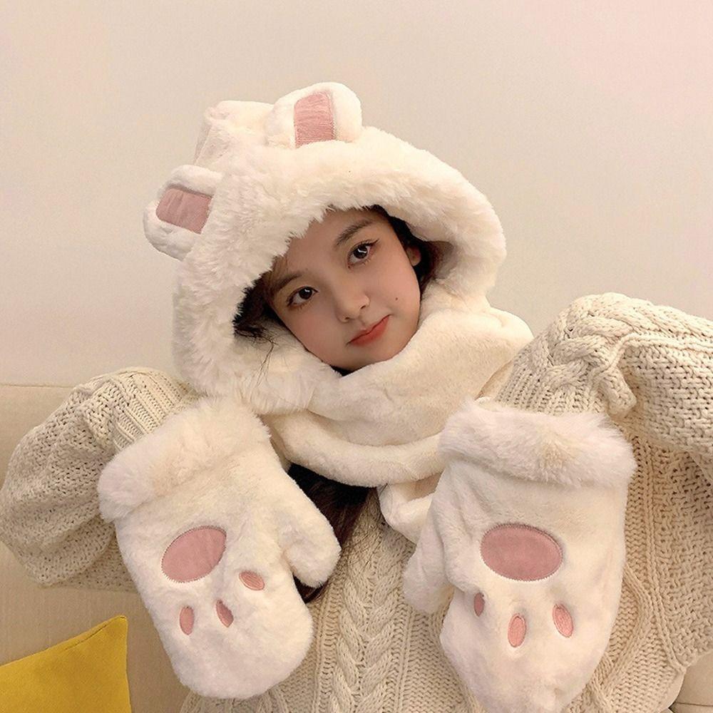 Женские толстые плюшевые шапки, ветрозащитные варежки, перчатки, комплект, зимняя шапка с капюшоном, шарф, шапка, перчатки, комплекты