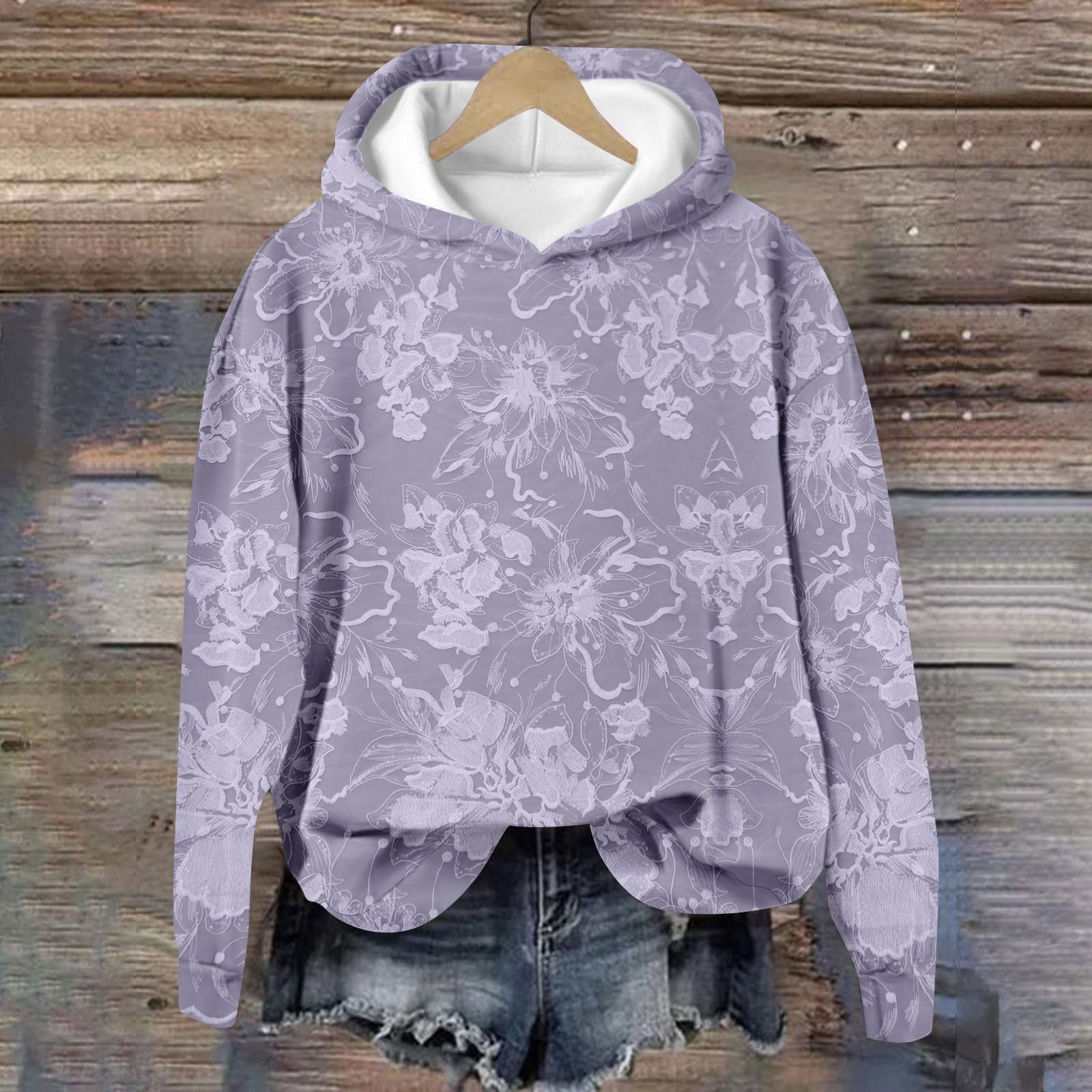 Женские топы Толстовка с принтом Круглый вырез С капюшоном Повседневная XXL фиолетовый
