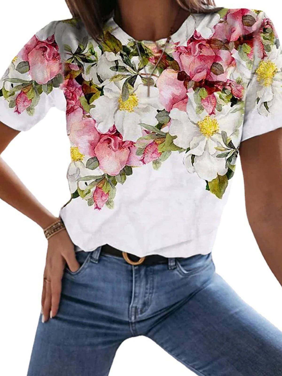Женские топы Хлопковые топы Свободные повседневные широкие топы с длинными рукавами и принтом XL белый