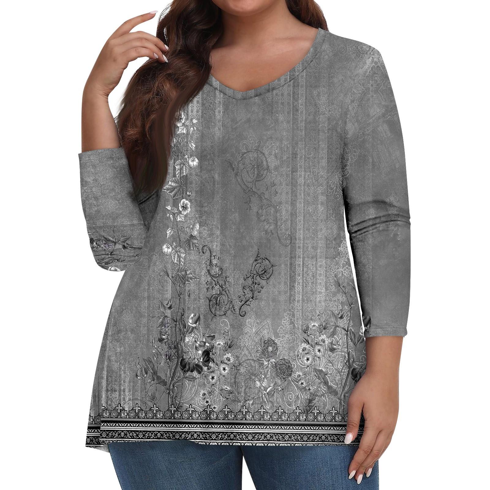 Женские топы больших размеров, рубашки с рукавами 3/4, повседневная одежда с V-образным вырезом, топы с принтами XXXXXL серый