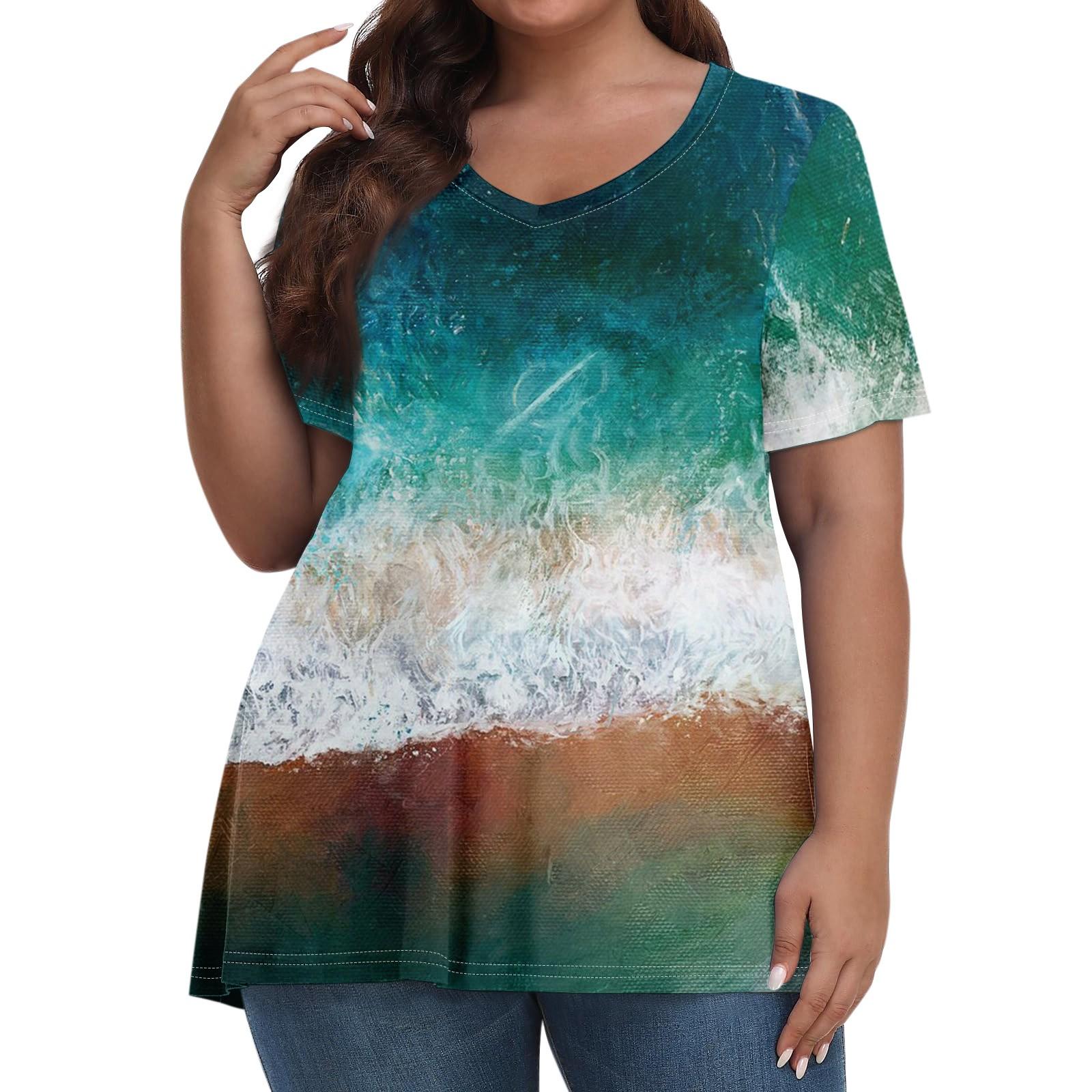 Женские топы больших размеров, шорты с рукавами, рубашки с V-образным вырезом, повседневная одежда, топы с принтами XL белый
