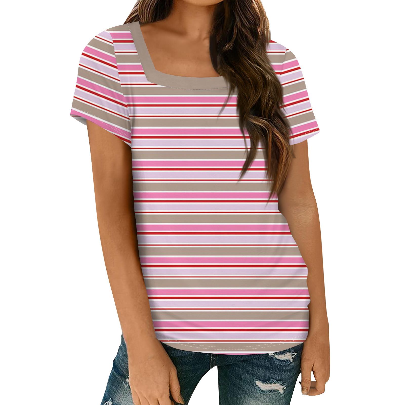 Женские топы, весенне-летняя повседневная футболка с коротким рукавом и квадратным вырезом, базовая футболка с принтом XL розовый