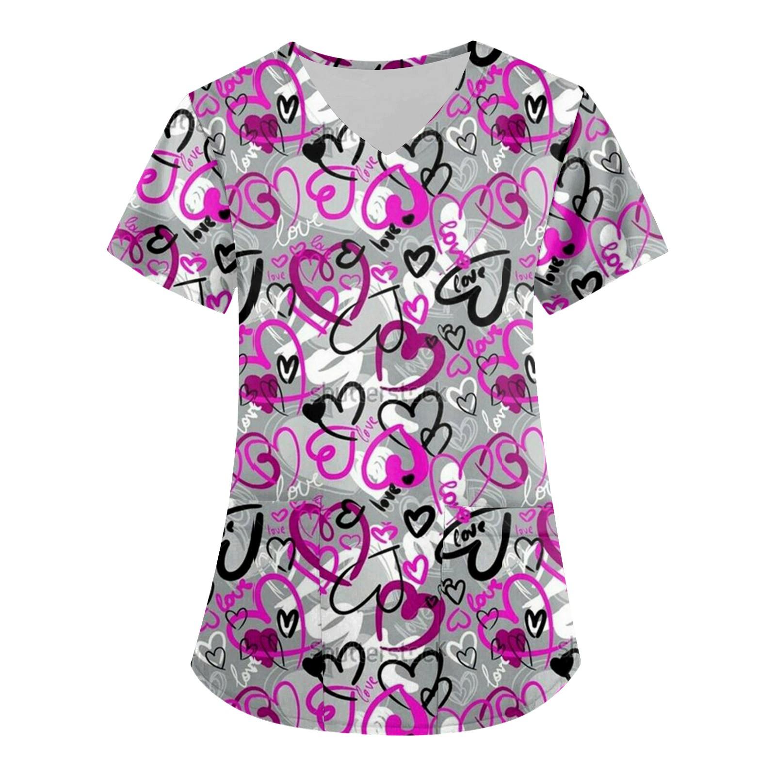 Женские топы с короткими рукавами и v-образным вырезом с принтом в виде сердечек на День святого Валентина, рабочая блузка с карманами XXXXL фиолетовый