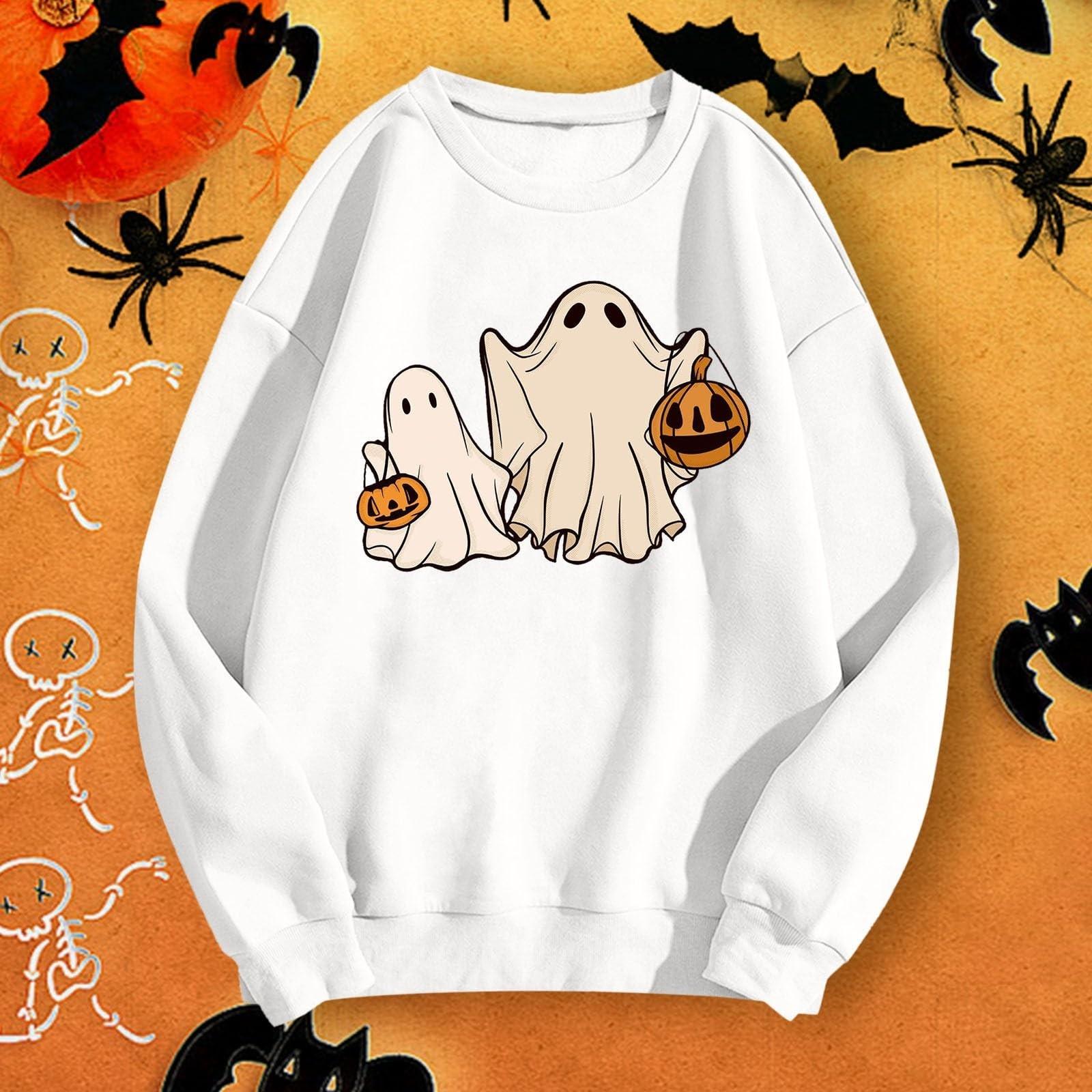 Женские топы с круглым вырезом и принтом из хлопка, повседневная мода, длинный рукав, пуловер, топ, блузка XL белый