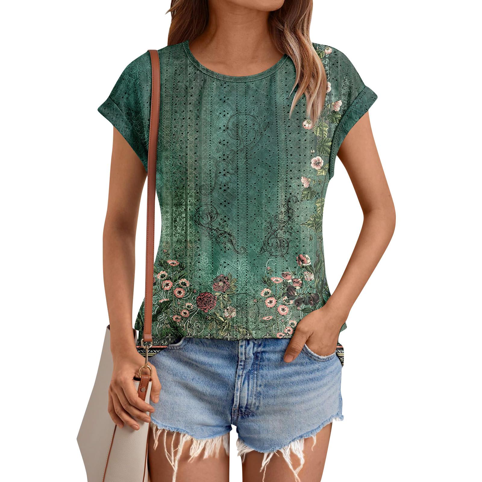 Женские топы, футболки с коротким рукавом, блузки с принтом, нарядные повседневные ажурные вышивки, летняя модная одежда L армия зеленый
