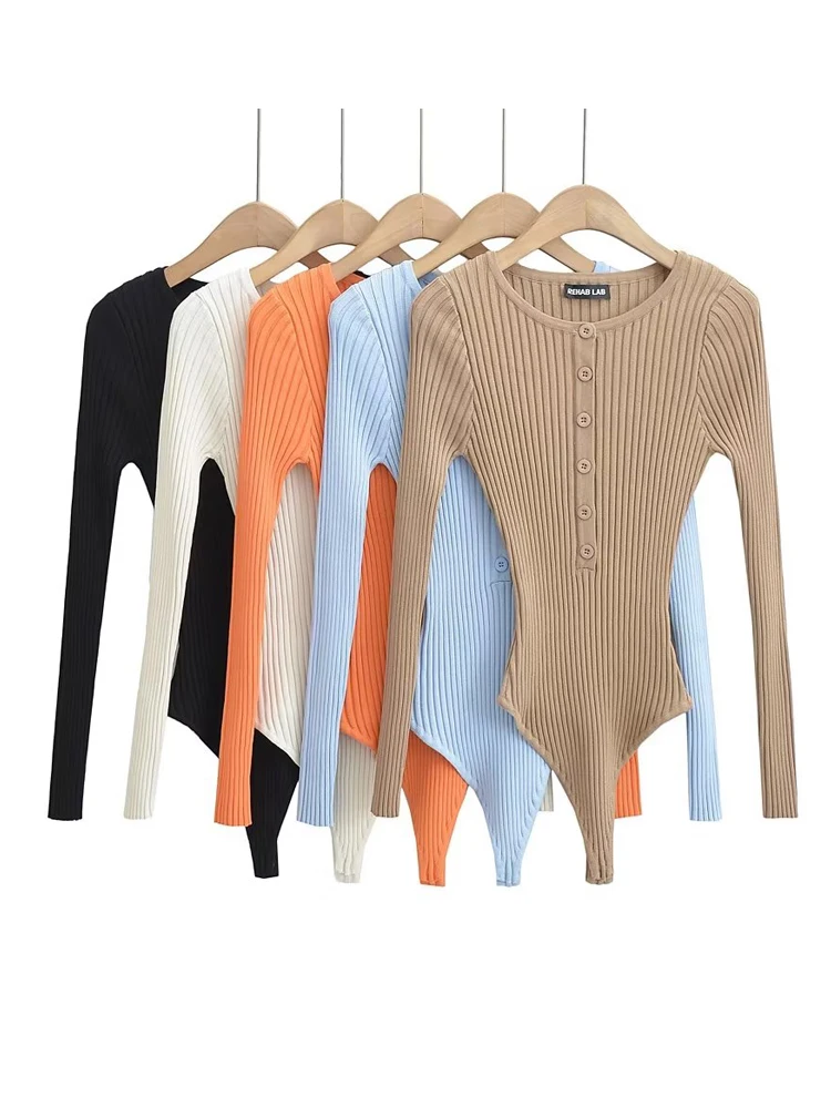 Женские трикотажные комбинезоны в рубчик с длинным рукавом, однотонные обтягивающие топы, женские боди