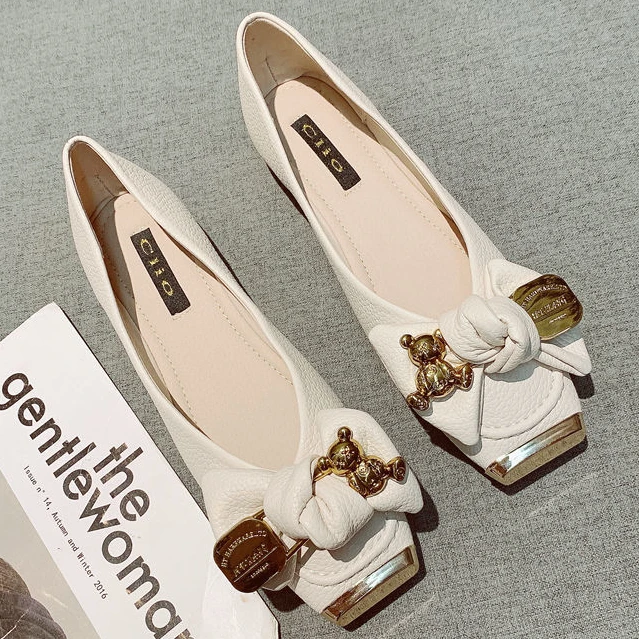 Женские туфли из ПУ кожи, с металлическим квадратным носком, с бантом