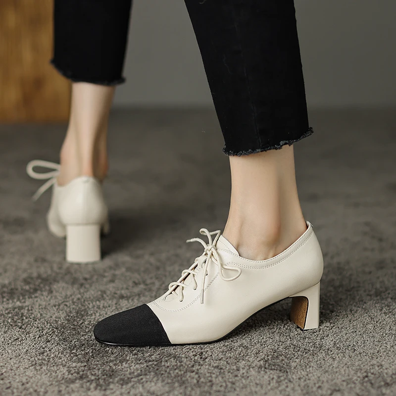 Женские туфли из натуральной кожи, туфли-лодочки из овечьей и тканевой кожи, на толстом квадратном каблуке 22-2023 см, весна 24,5