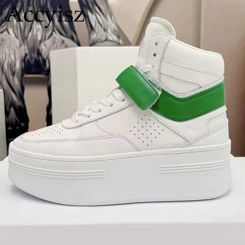 Женские туфли из натуральной кожи, маленькие удобные кроссовки на толстой подошве, цвет белый, весна-осень