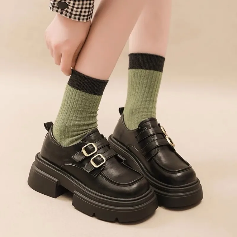 Женские туфли-лодочки без застежки, однотонные водонепроницаемые туфли на платформе с круглым носком и пряжкой, на осень, 2024