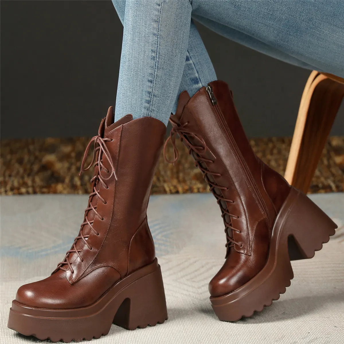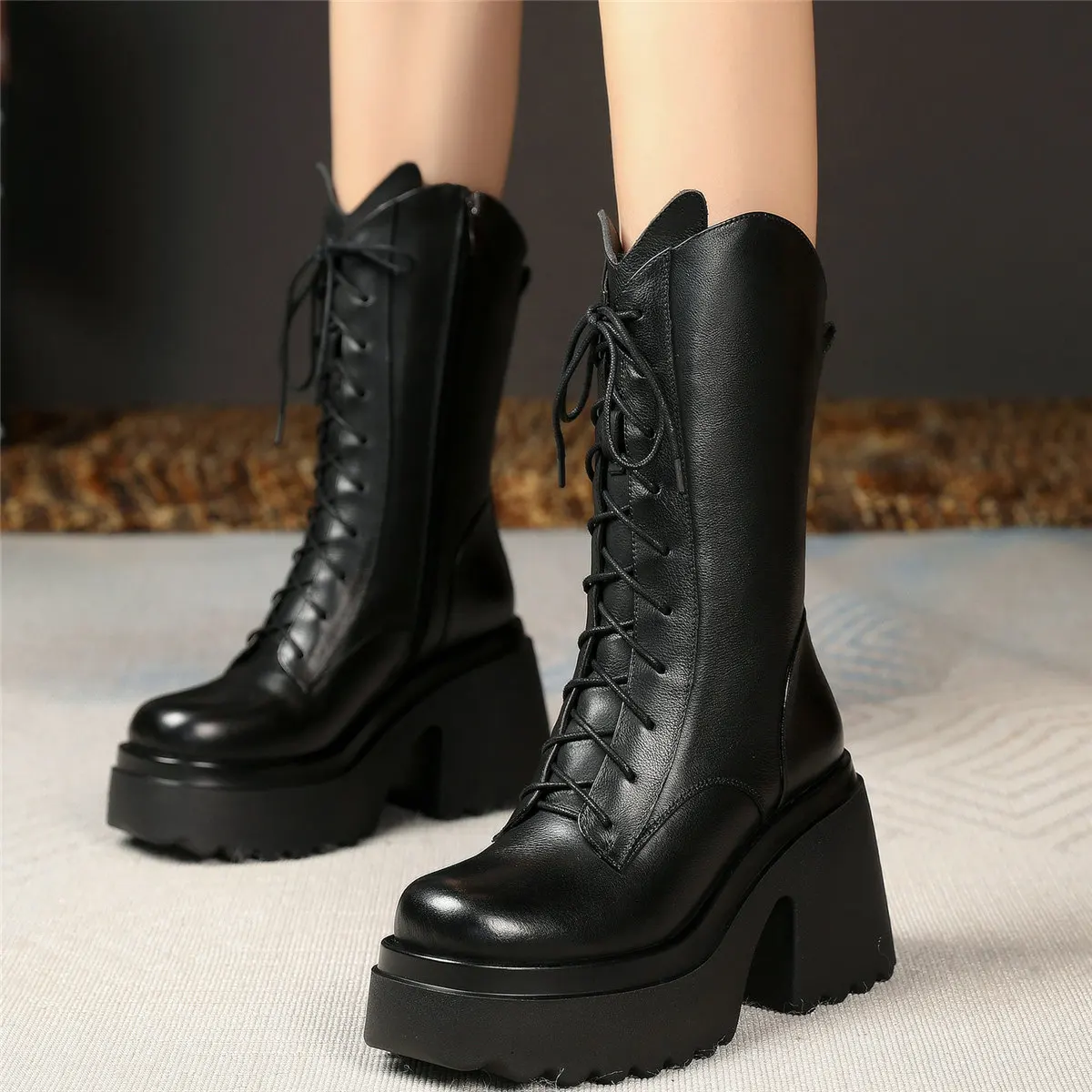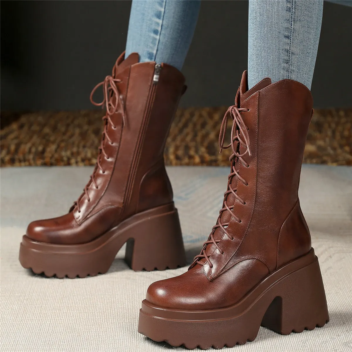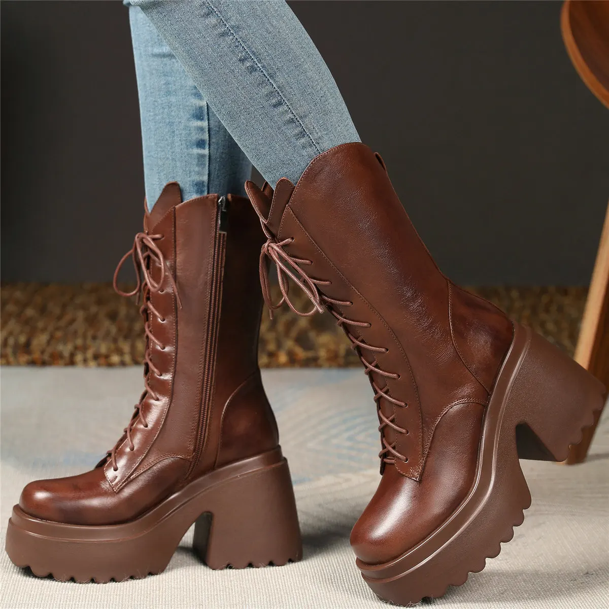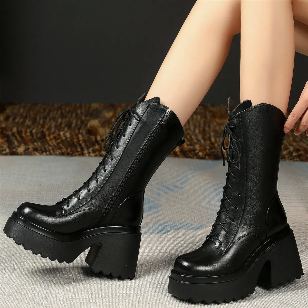 Женские туфли-лодочки из натуральной кожи, на высоком каблуке, с круглым носком