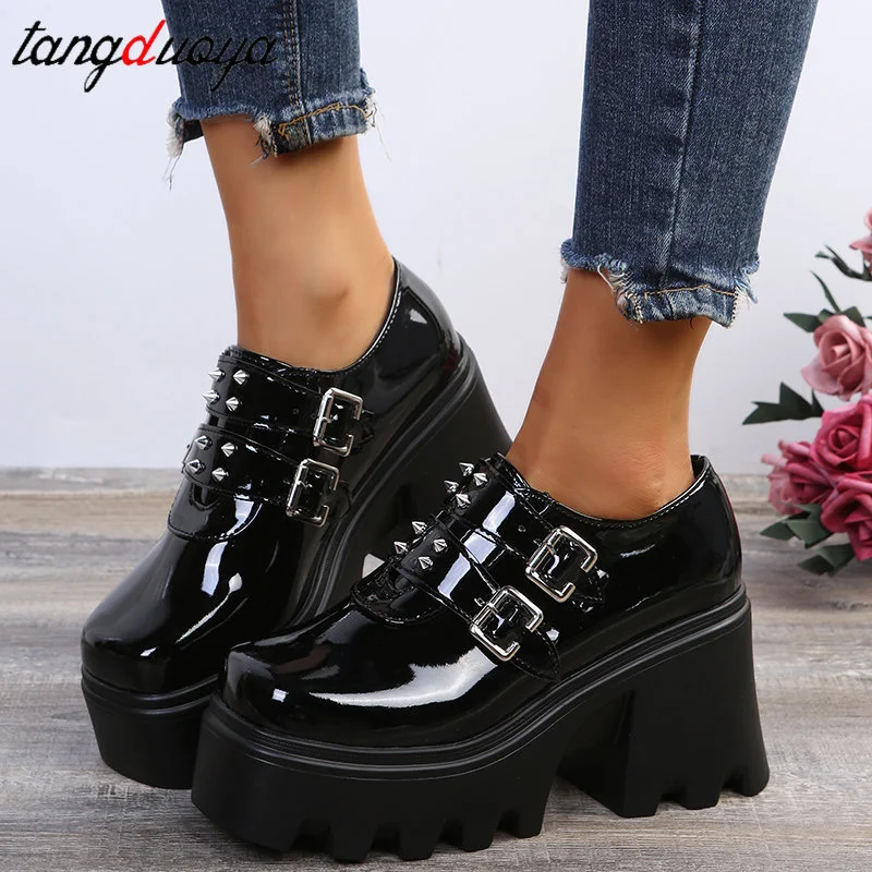 Женские туфли-лодочки на блочном каблуке, с круглым носком и пряжкой