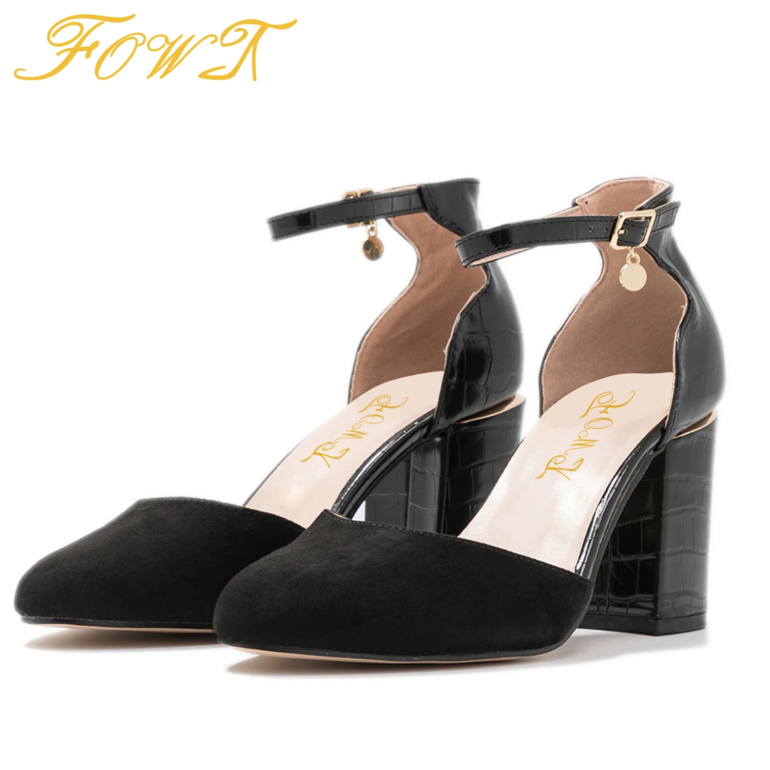 Женские туфли-лодочки на высоком квадратном каблуке с тиснением под крокодила