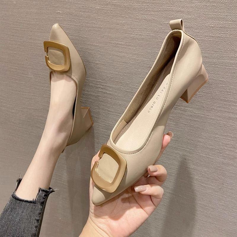 Женские туфли-лодочки на низком каблуке, элегантные туфли для женщин, черные, с острым носком, офисные, обычные, кожаные, повседневные, по акции, лето 2024, обувь 39 34