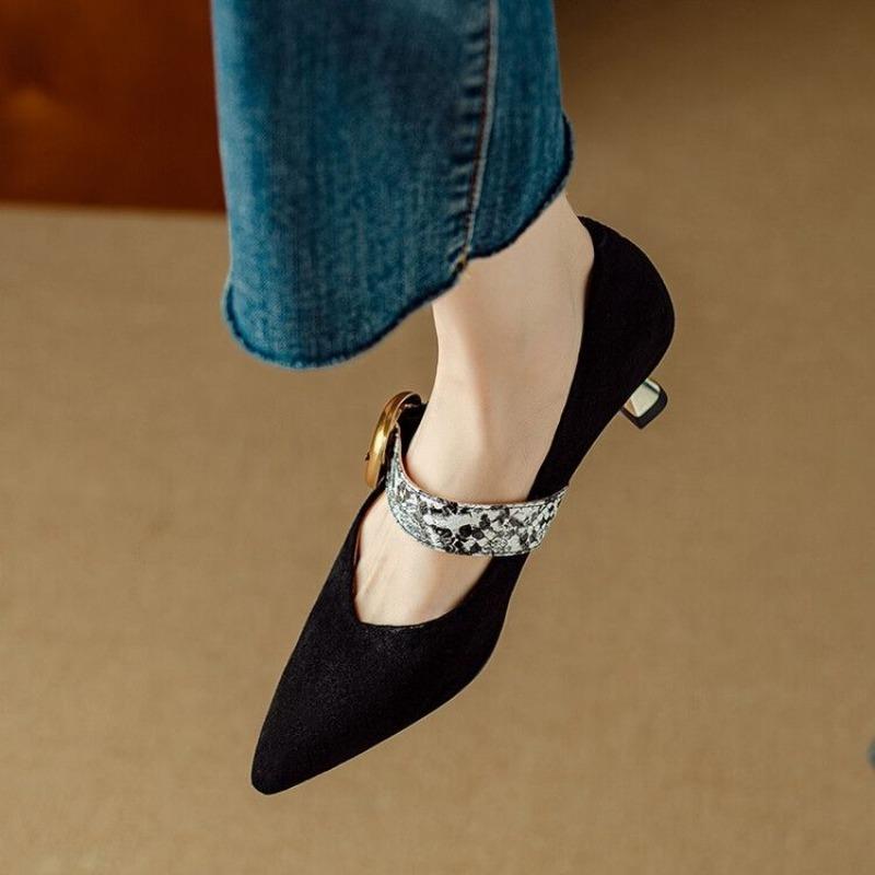 Женские туфли-лодочки сексуальные на среднем каблуке женская обувь с острым носком черные из натуральной кожи Марк шикарные и элегантные на распродаже акция обувь Y2k 40