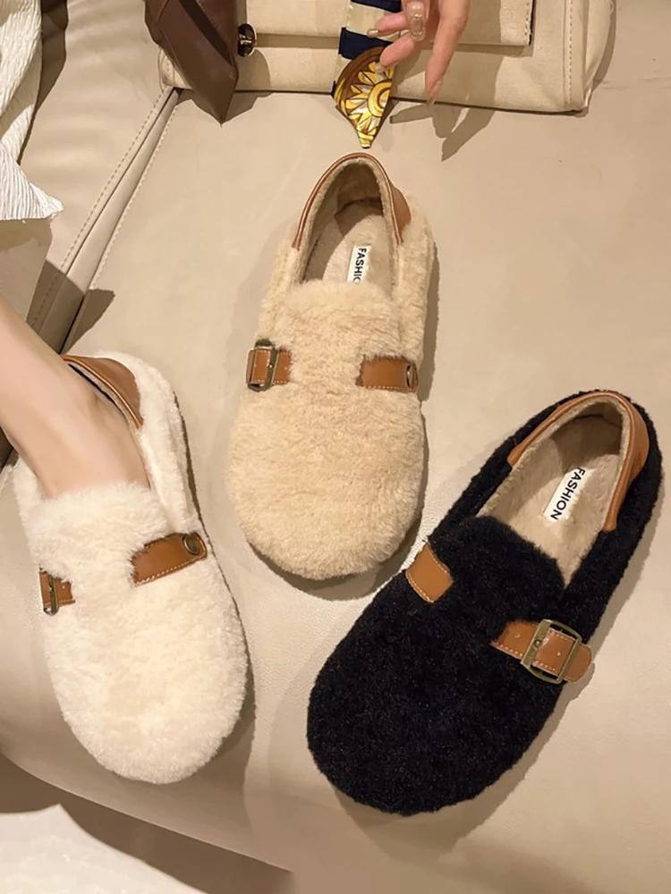 Женские туфли-лодочки с закрытым носком, мягкие повседневные кроссовки, лоферы, без застежки, с круглым носком, на меху, Мокасины, Осень-зима