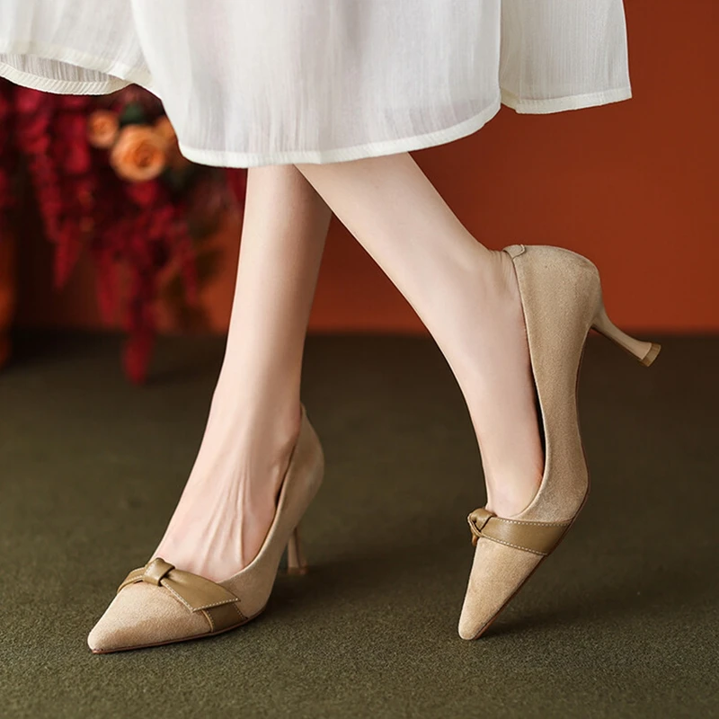 Женские туфли-лодочки с острым носком, туфли из овечьей замши на высоком каблуке-шпильке, весна 2023