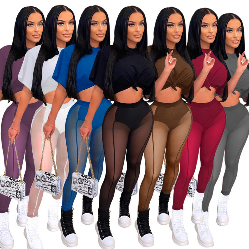 Tracksuits For Women Sexy Mesh 2 Piece Sets Crop Tops Sheer Yoga Pants See Through Leggings Sweatsuits Designer Clothing, Mix or give a list