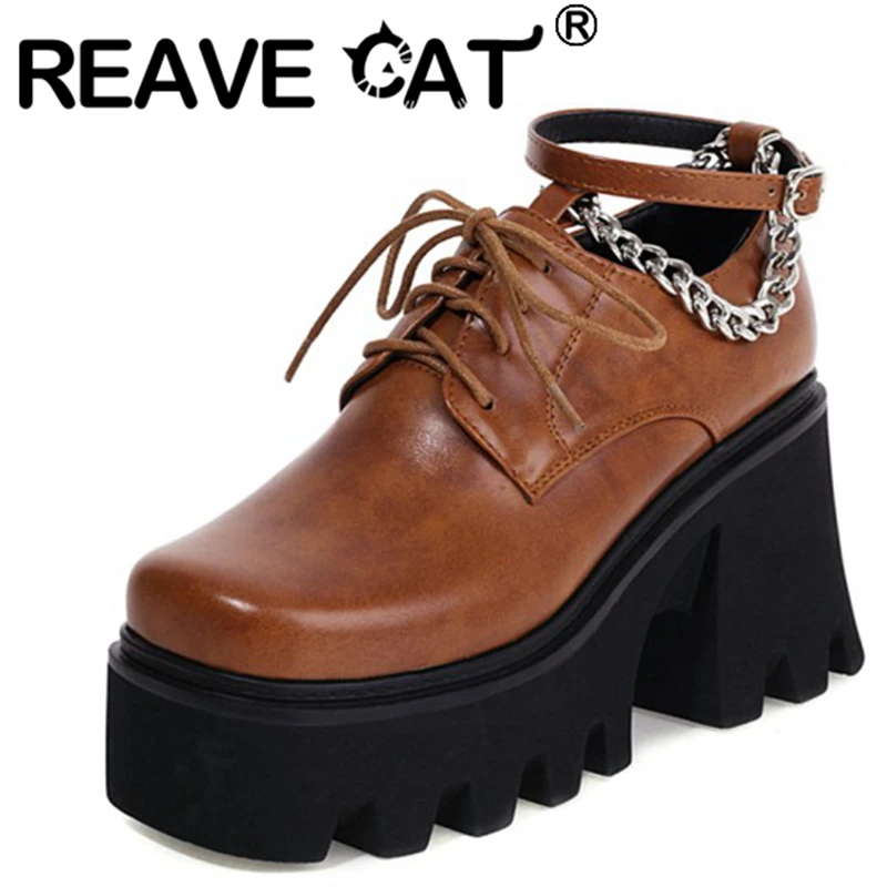 Женские туфли-лодочки REAVE CAT, панк-лодочки на высокой толстой подошве 8 см, с цепочкой и ремешком с пряжкой на щиколотке, Размеры 35-44, A4156, 2021