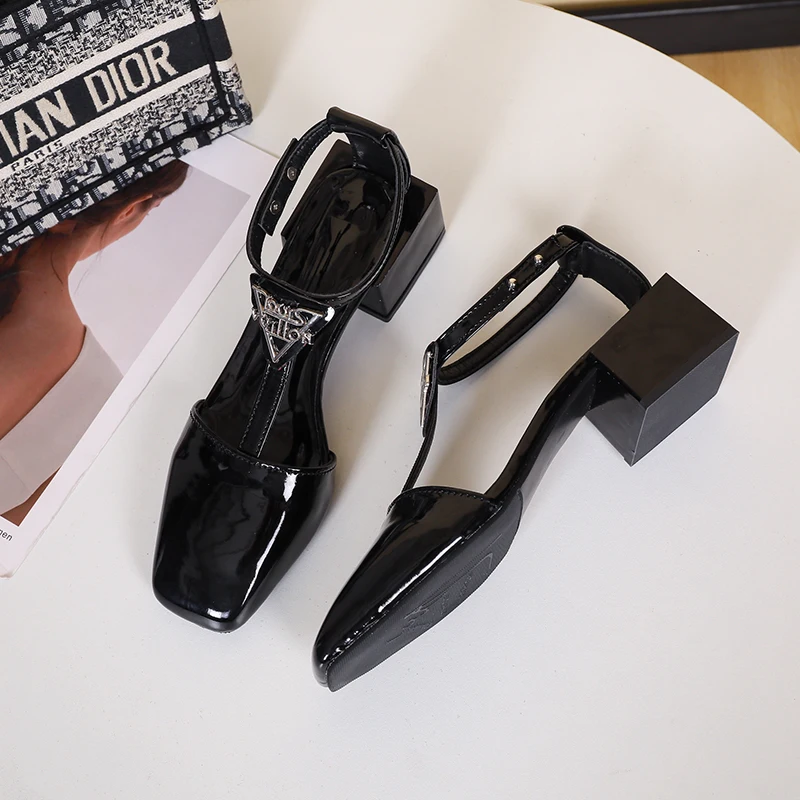 Женские туфли мэри джейн с квадратным носком, ажурные туфли на высоком каблуке, с металлическим украшением, летняя обувь