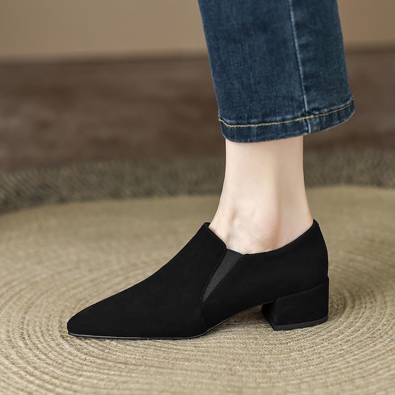 Женские туфли на высоком каблуке весенне-осенние на толстом каблуке с острым носком, новая маленькая кожаная обувь, матовая модная обувь 41 чёрный