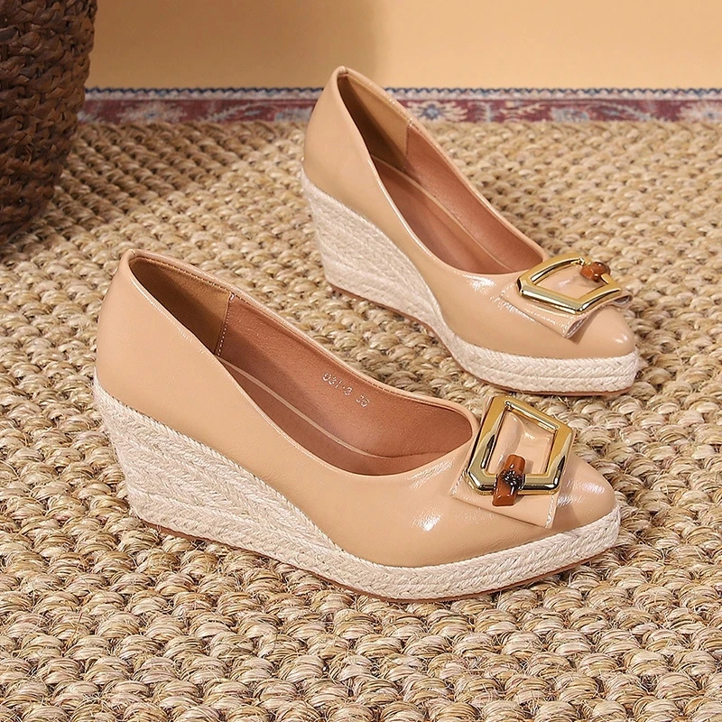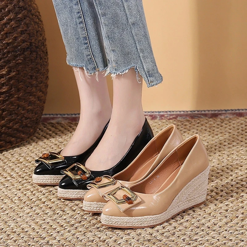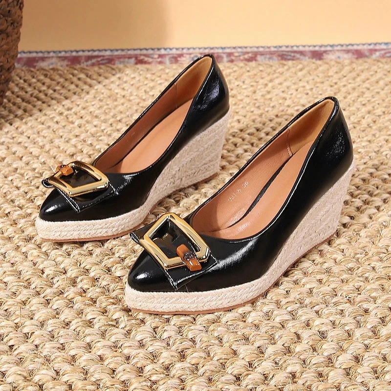 Женские туфли на высоком каблуке, офисные туфли-лодочки на танкетке черного цвета, 2023