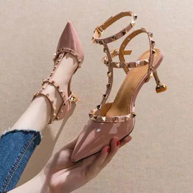 Женские туфли на высоком каблуке с заклепками и острым носком, женская летняя универсальная пикантная оранжевая женская обувь, сандалии 39