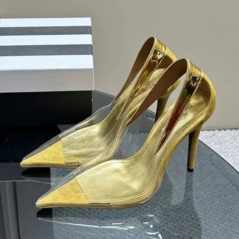 Женские туфли на высоком каблуке, с острым носком, прозрачные туфли-лодочки из ПВХ на тонком каблуке, 2024