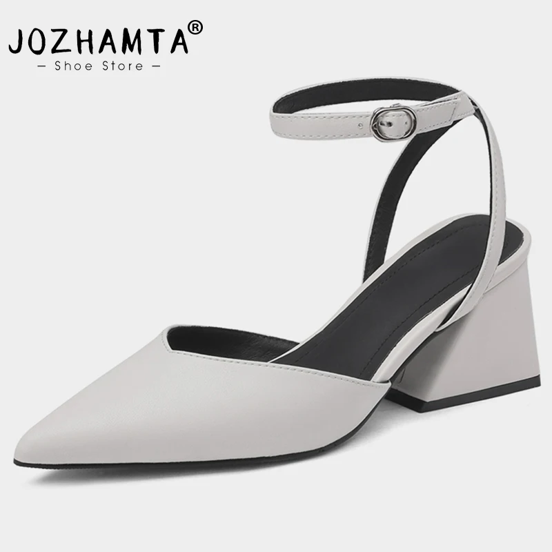 Женские туфли на высоком каблуке JOZHAMTA, туфли с острым носком и ремешком на щиколотке в стиле ретро, размеры 34-40, лето 2023