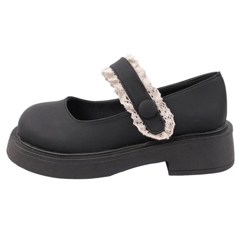 Женские туфли на каблуках с милой кружевной отделкой и круглым носком Туфли Мэри Джейн с пряжкой на липучке Модные туфли на платформе с широким каблуком в стиле Лолиты 40 чёрный