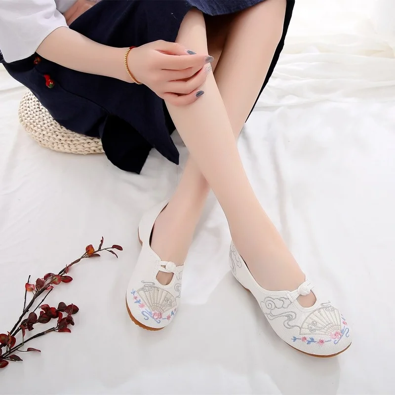 Женские туфли на низком каблуке, Вулканизированная подошва, дышащие парусиновые туфли с принтом, в китайском стиле ретро, лето-осень 2021