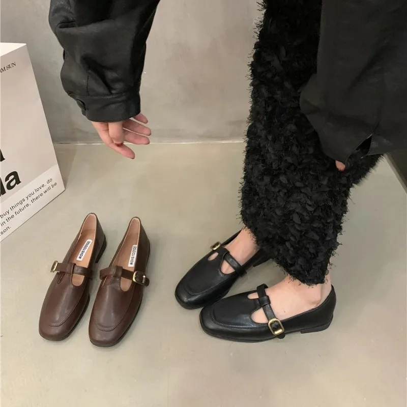Женские туфли на низком каблуке, винтажные Кожаные Туфли Мэри Джейн с пряжкой и Т-образным ремешком, весна-осень 2024