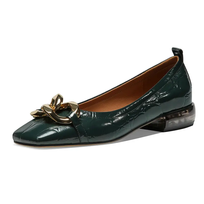 Женские туфли на низком каблуке, туфли-лодочки из натуральной кожи с квадратным носком и металлической цепочкой, новейшие свадебные туфли д...