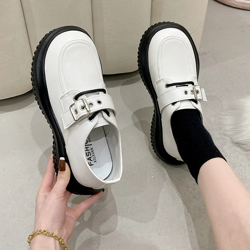 Женские туфли на платформе в британском стиле, повседневные кроссовки, оксфорды, универсальная обувь на плоской подошве, клоги в стиле преппи, кожаное платье, летняя обувь для отдыха