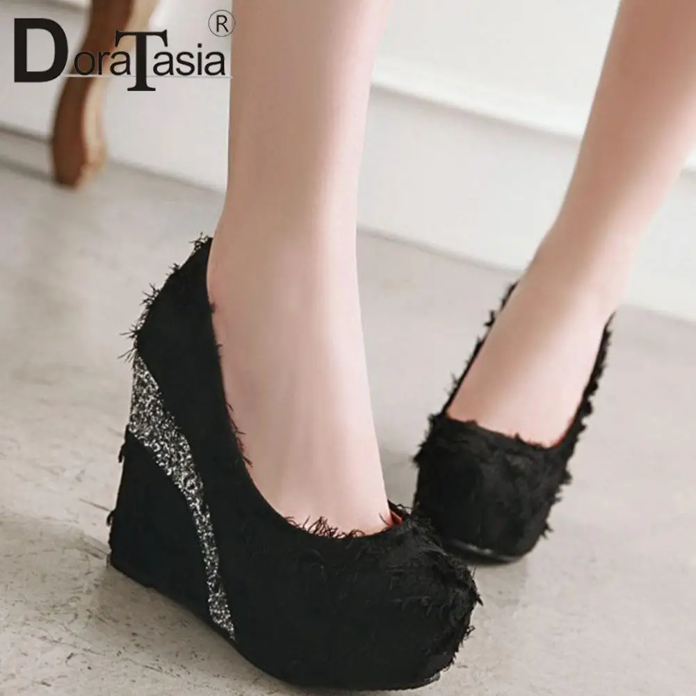 Женские туфли на платформе DORATASIA, туфли-лодочки на танкетке без застежки, на высоком каблуке, офисная обувь для вечеринки, большой размер 33-43, 2022
