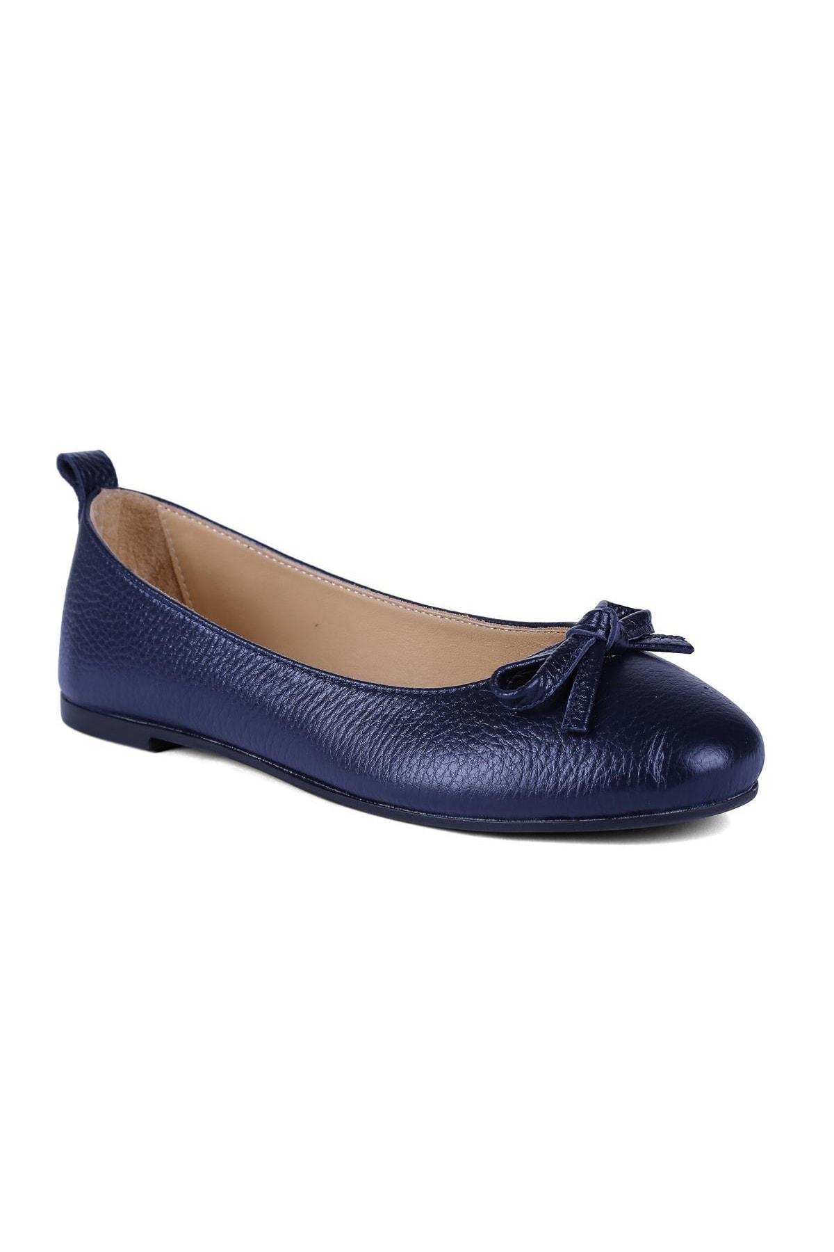 Женские туфли на плоской подошве, балетки из натуральной темно-синей кожи 10055 35