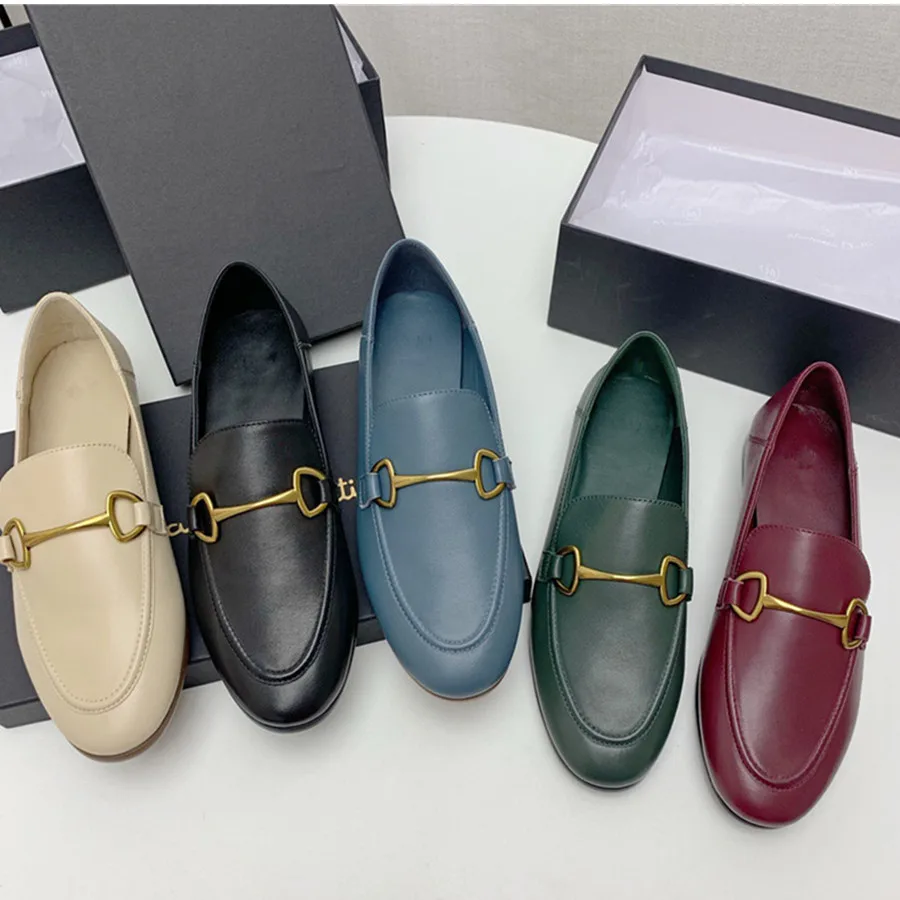 Женские туфли на плоской подошве, из натуральной кожи, с золотистой пряжкой